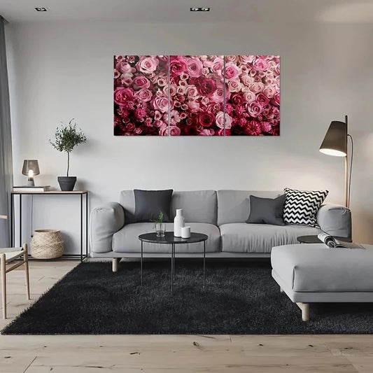 3pcs Abstract Flower Pink Rose Metal Print Ready to Hang Art