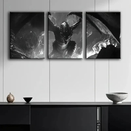 3pcs Black Dragon Wings Painting Metal Print Ready to Hang Art
