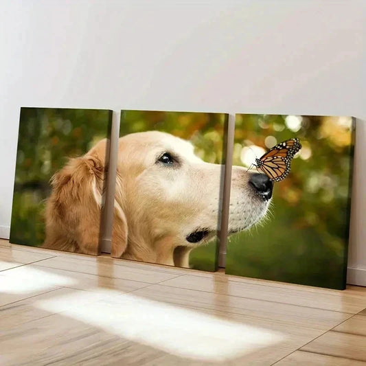 3pcs Golden Retriever with Butterfly Wall Art Set Canvas Framed 40x60cm - High Quality Print 100% Australian Made Wall Canvas Ready to Hang