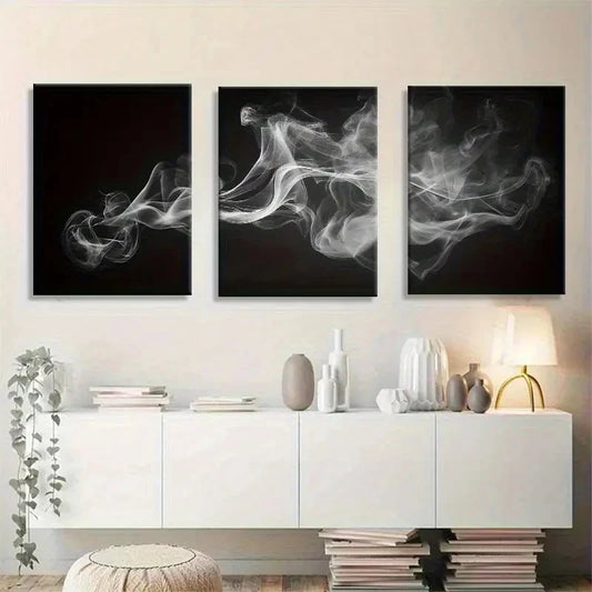 3pcs Monochrome Smoke Flow Mural Painting Metal Print Ready to Hang Art