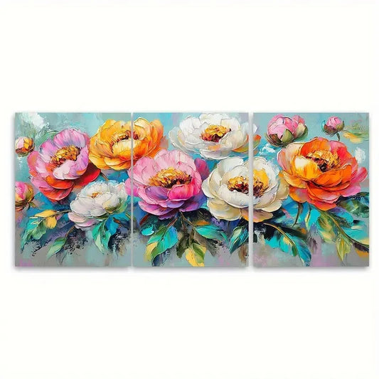 3pcs Colorful Floral Impressionist Blooming Petal Wall Art Set Canvas Framed 40x60cm - High Quality Print 100% Australian Made Wall Canvas Ready to Hang