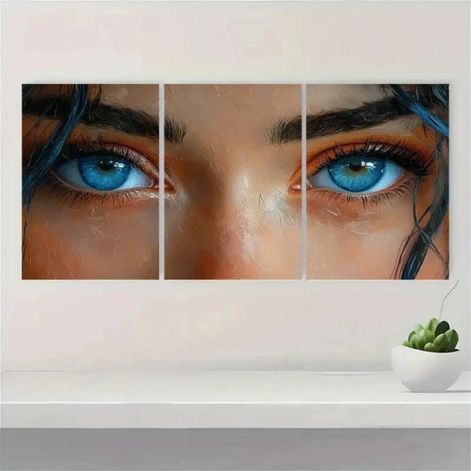 3pcs Abstract Blue-Eyed Girl Face Perfect Wall Art Set Canvas Framed 40x60cm - High Quality Print 100% Australian Made Wall Canvas Ready to Hang