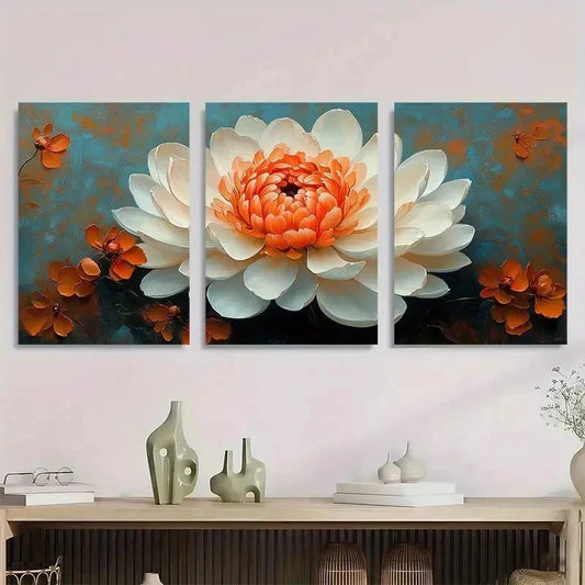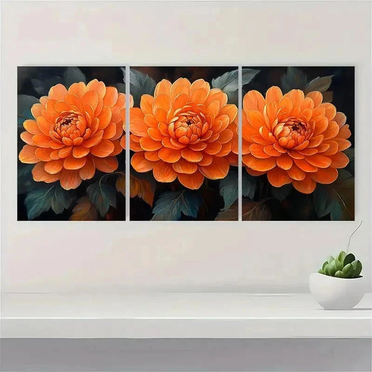 3pcs Orange Chrysanthemum Flower White Perfect Wall Art Set Canvas Framed 40x60cm - High Quality Print 100% Australian Made Wall Canvas Ready to Hang