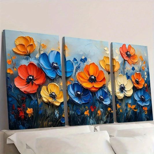 3pcs Vibrant Floral Modern Abstract Wall Art Set Canvas Framed 50x70cm - High Quality Print 100% Australian Made Wall Canvas Ready to Hang