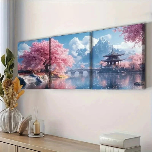3pcs Pink Cherry Blossom Trees Wall Art Set Canvas Framed 40x60cm - High Quality Print 100% Australian Made Wall Canvas Ready to Hang