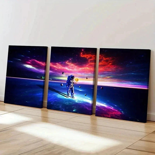 3pcs Space Astronaut Planet Art Painting Wall Art Set Canvas Framed 40x60cm - High Quality Print 100% Australian Made Wall Canvas Ready to Hang