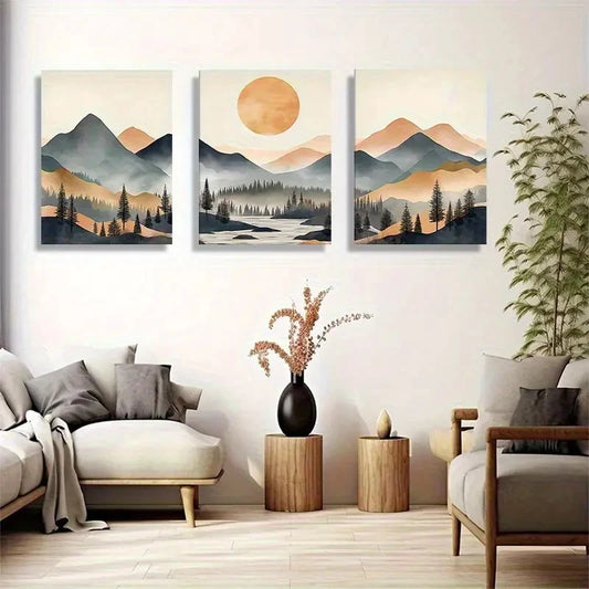 3pcs Stylized Mountain and Tree Scenery Metal Print Ready to Hang Art
