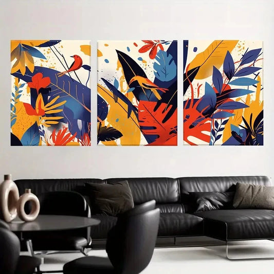 3pcs Vivid Abstract Tropical Bird and Leaf Design Metal Print Ready to Hang Art