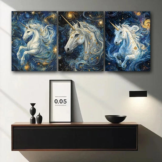 3pcs The Dream Unicorn Animal Themed Metal Print Ready to Hang Art