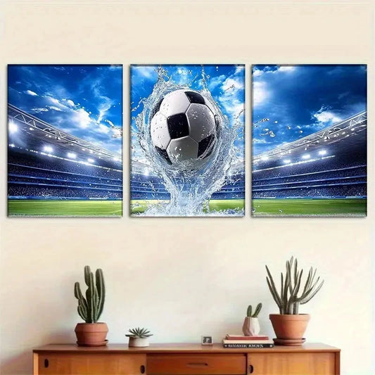 3pcs Stadium Soccer Splash Dynamic Sports Metal Print Ready to Hang Art