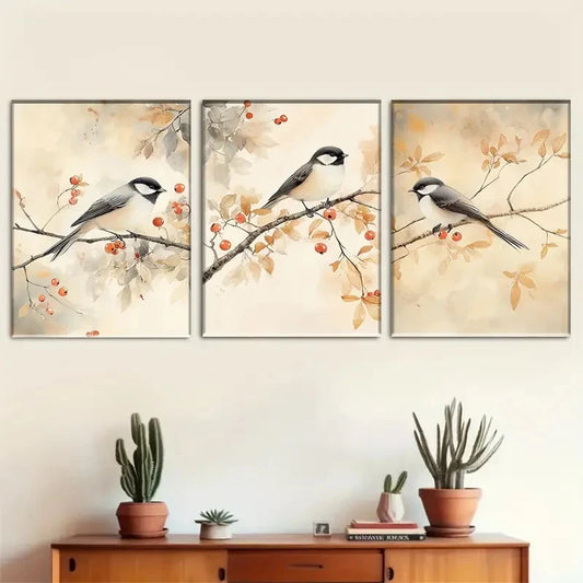 3pcs Serene Autumn Branches with Hummingbirds Metal Print Ready to Hang Art