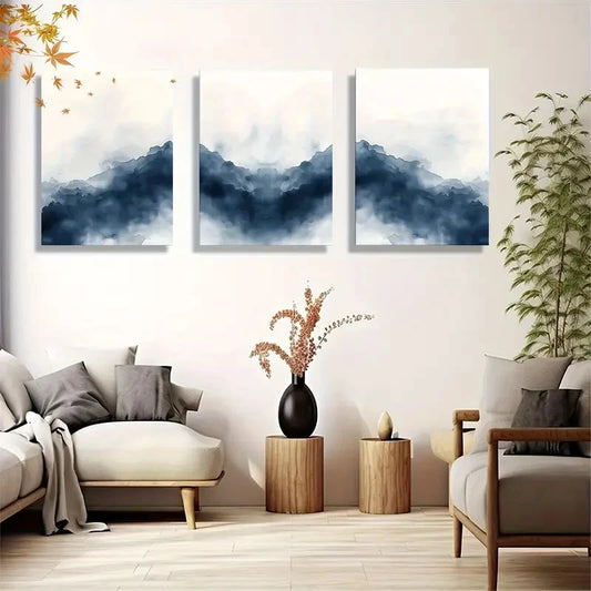 3pcs Blue and White Abstract Zen Scenery Metal Print Ready to Hang Art