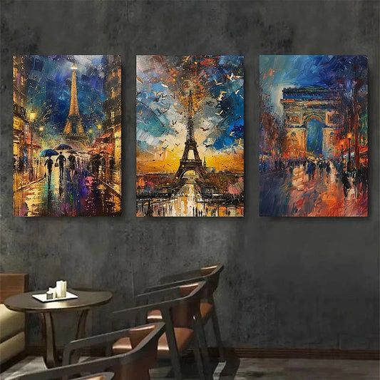 3pcs Featuring the Beautiful Eiffel Tower Metal Print Ready to Hang Art