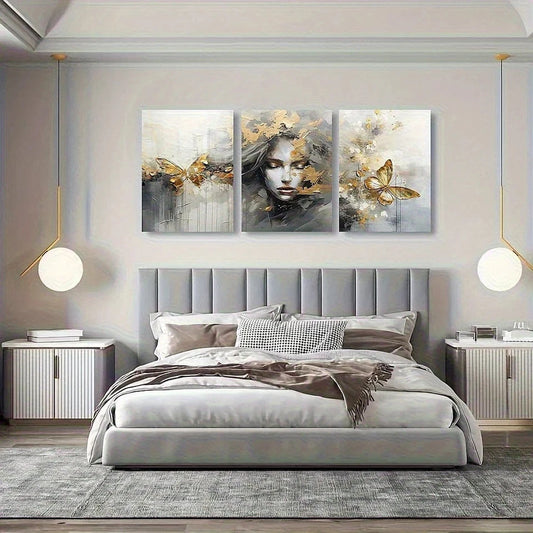 3pcs Abstract Female with Butterfly Oil Painting Metal Print Ready to Hang Art
