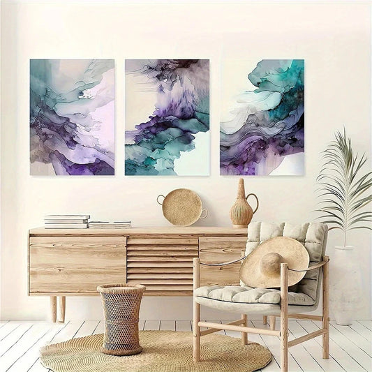 3pcs Artificial Jade Abstract Purple Green Metal Print Ready to Hang Art