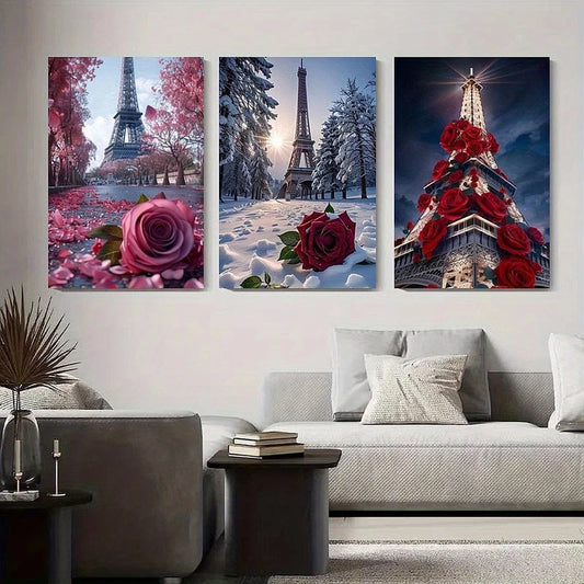 3pcs Eiffel Tower And Rose Romantic Paris Metal Print Ready to Hang Art