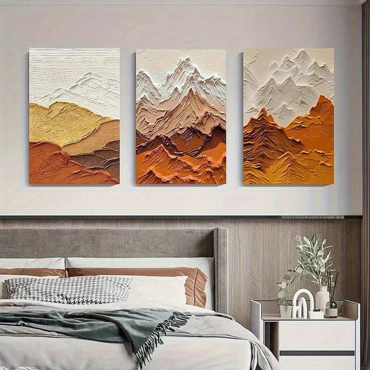 3pcs Abstract Mountain Earth Tone Geometric Metal Print Ready to Hang Art