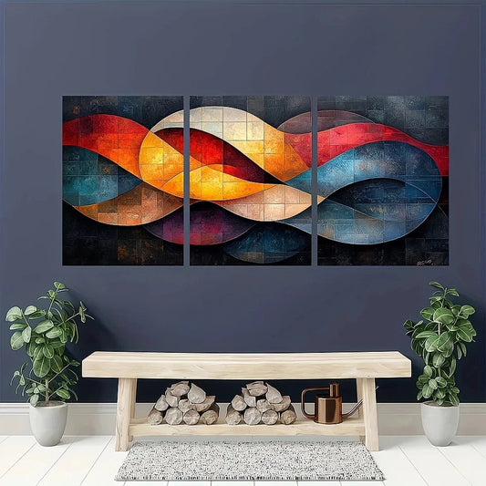 3pcs Abstract Geometric Vibrant Curves Metal Print Ready to Hang Art