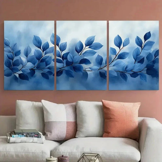 3pcs Floral Foliage Cool Toned Grey Blue Design Wall Art Set Canvas Framed 50x70cm - High Quality Print 100% Australian Made Wall Canvas Ready to Hang