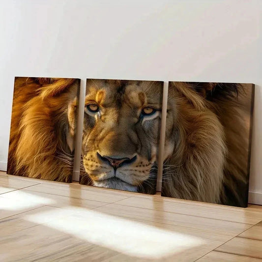 3pcs Modern Lion with Mane Decoration Wall Art Set Canvas Framed 40x60cm - High Quality Print 100% Australian Made Wall Canvas Ready to Hang