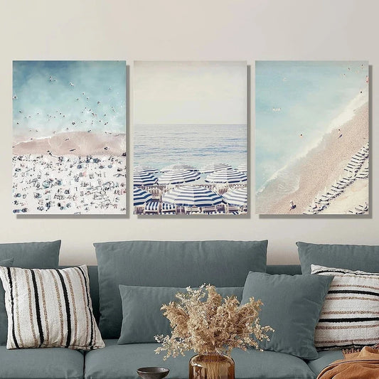 3pcs Blue and White Umbrella Sunshade Metal Print Ready to Hang Art