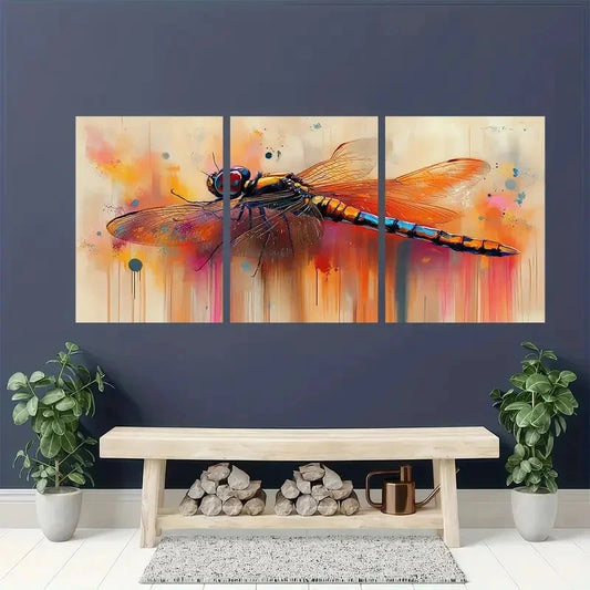 3pcs Dragonfly Colorful Abstract Wall Decor Metal Print Ready to Hang Art
