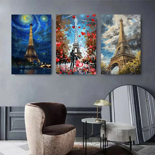 3pcs Eiffel Tower Scenes Colorful Landscape Metal Print Ready to Hang Art