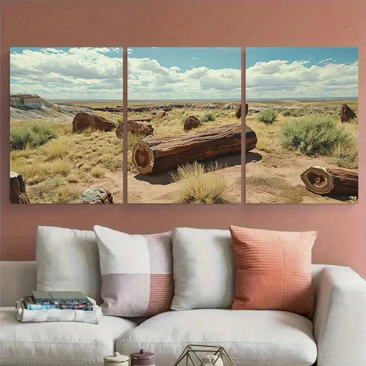 3pcs Petrified Forest National Park Illustration Wall Art Set Canvas Framed 50x70cm - High Quality Print 100% Australian Made Wall Canvas Ready to Hang