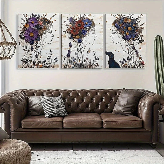 3pcs Elegant and Romantic Nature Flower Crown Metal Print Ready to Hang Art