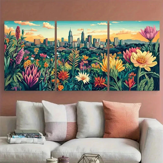 3pcs Modern Abstract Elegant City Metal Print Ready to Hang Art