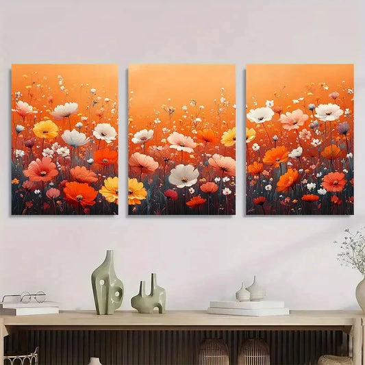 3pcs Blocky Colorful Design Sunflower Field Wall Art Set Canvas Framed 60x90cm - High Quality Print 100% Australian Made Wall Canvas Ready to Hang