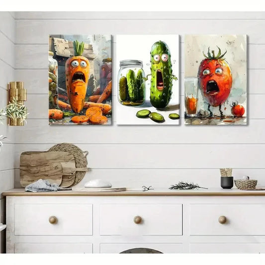 3pcs Whimsical Pickle Cool Vegetable Food Metal Print Ready to Hang Art