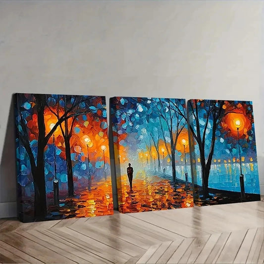3pcs Orange Street Lamps Urban Night Wall Art Set Canvas Framed 60x90cm - High Quality Print 100% Australian Made Wall Canvas Ready to Hang