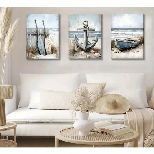 3pcs Nautical Sailboat Paddle & Anchor Wall Art Set Canvas Framed 60x90cm - High Quality Print 100% Australian Made Wall Canvas Ready to Hang