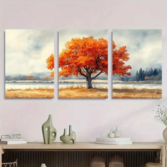 3pcs Autumn Color Art Neutral Oak Tree Perfect Wall Art Set Canvas Framed 40x60cm - High Quality Print 100% Australian Made Wall Canvas Ready to Hang
