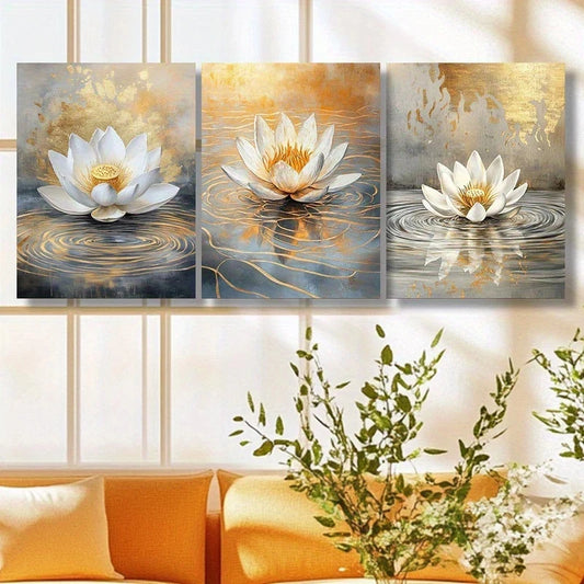 3pcs Vibrant Colour White Flowers Metal Print Ready to Hang Art