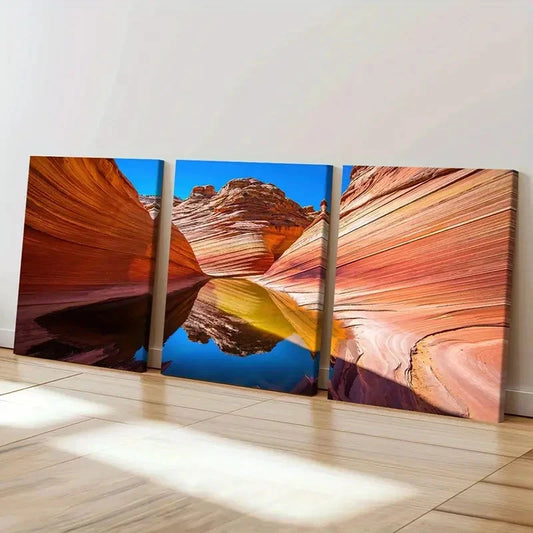 3pcs Wave Rocky Canyon Arizona Landscape Wall Art Set Canvas Framed 40x60cm - High Quality Print 100% Australian Made Wall Canvas Ready to Hang