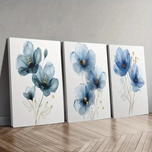 3pcs Modern Abstract Blue Floral Wall Art Set Canvas Framed 60x90cm - High Quality Print 100% Australian Made Wall Canvas Ready to Hang