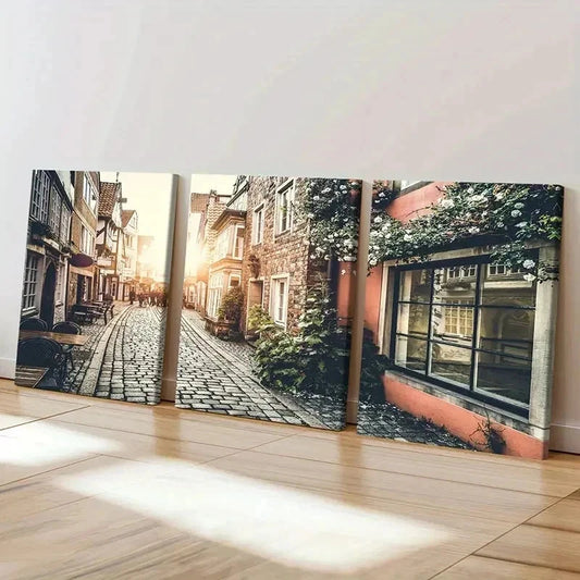 3pcs European Style Street Decoration Wall Art Set Canvas Framed 40x60cm - High Quality Print 100% Australian Made Wall Canvas Ready to Hang