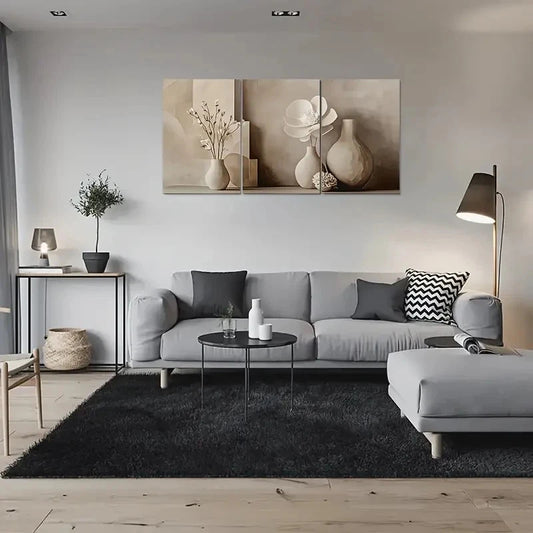 3pcs Abstract Flower Vase Painting Metal Print Ready to Hang Art