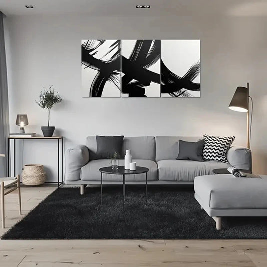 3pcs Abstract Black and White Brushstroke Metal Print Ready to Hang Art