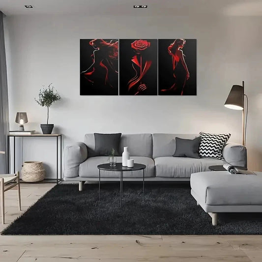 3pcs Red Rose Silhouette Elegant Painting Metal Print Ready to Hang Art