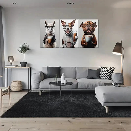 3pcs Adorable Animal Dog with Glasses and Bulldog Metal Print Ready to Hang Art
