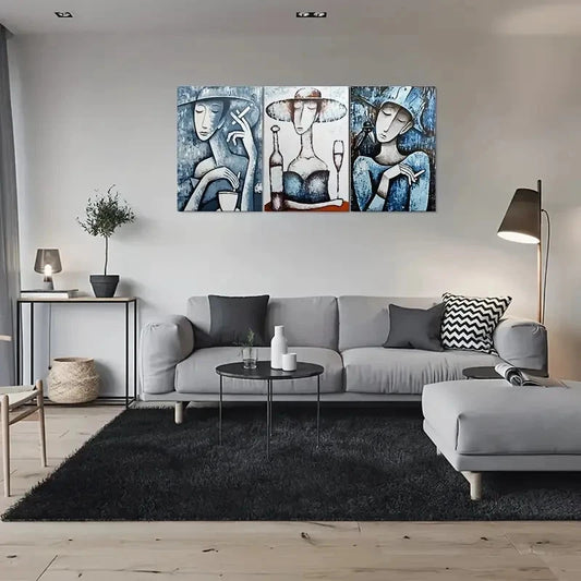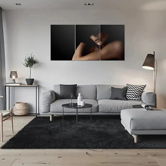 3pcs Modern Abstract Black and White Woman Metal Print Ready to Hang Art