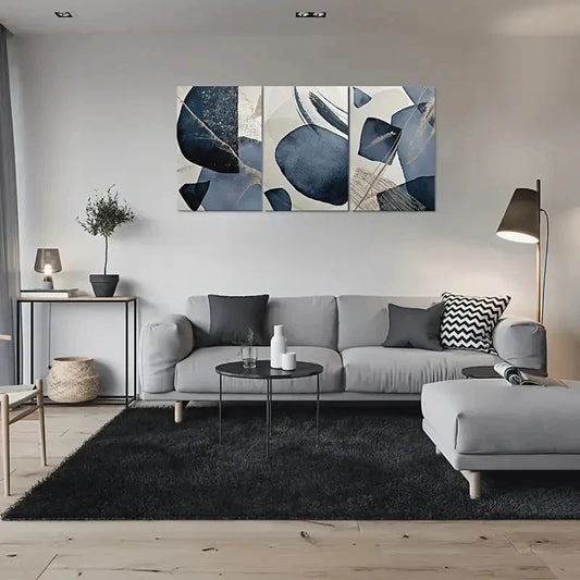 3pcs Navy Blue and White Geometric Metal Print Ready to Hang Art
