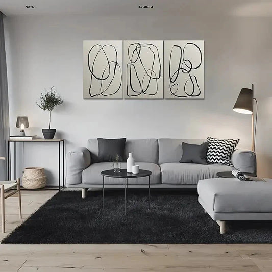 3pcs Black Line Drawings on Light Gray Metal Print Ready to Hang Art