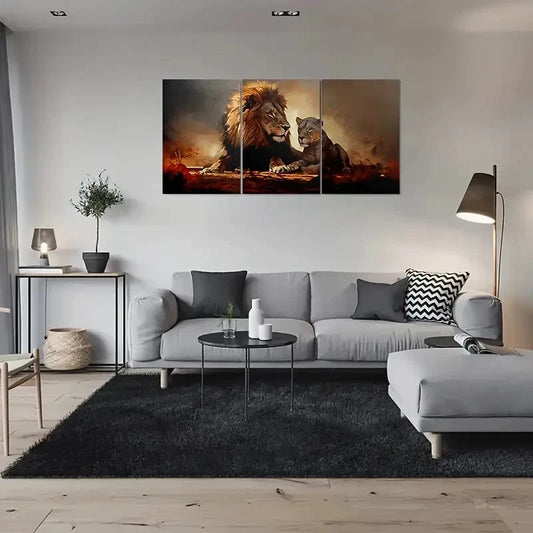 3pcs Triptych Lion and Lioness Wildlife Animal Metal Print Ready to Hang Art