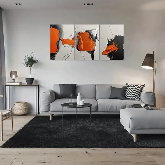 3pcs Orange Black and Gray Painting Metal Print Ready to Hang Art