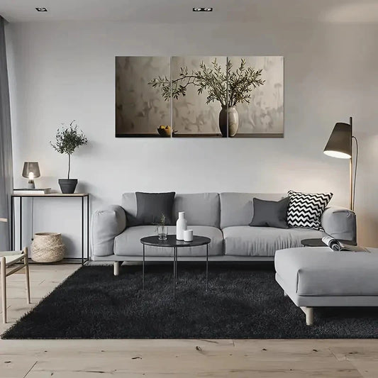 3pcs Abstract Nature Olive Branches Vase Metal Print Ready to Hang Art