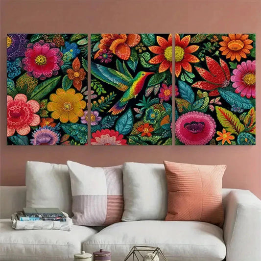 3pcs Botanical Florals & Birds Venezuela Travel Wall Art Set Canvas Framed 50x70cm - High Quality Print 100% Australian Made Wall Canvas Ready to Hang